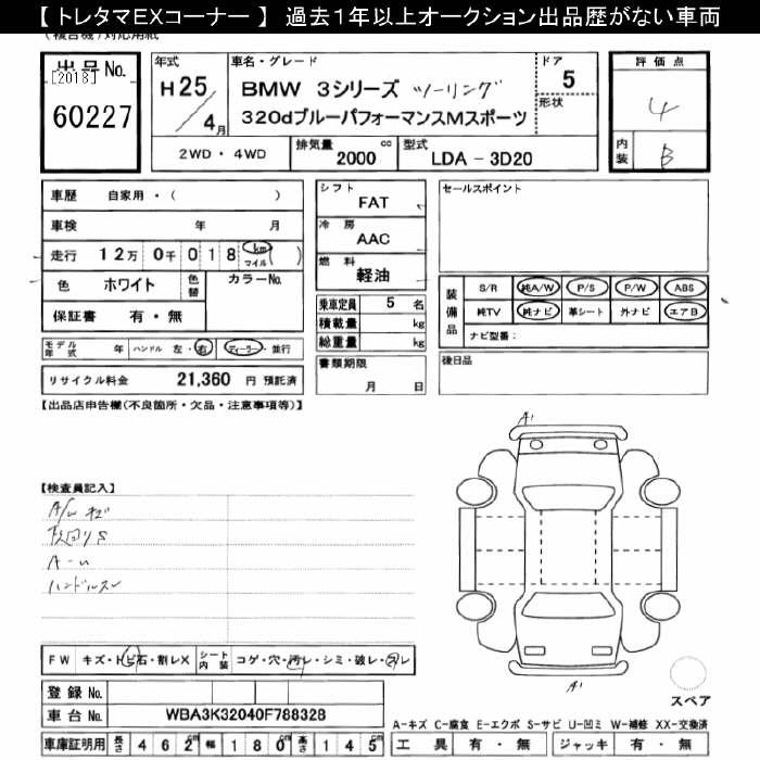BMW 3 SERIES 320D BLUE PERFORMANCE TOURING M SPORT - лот 60227