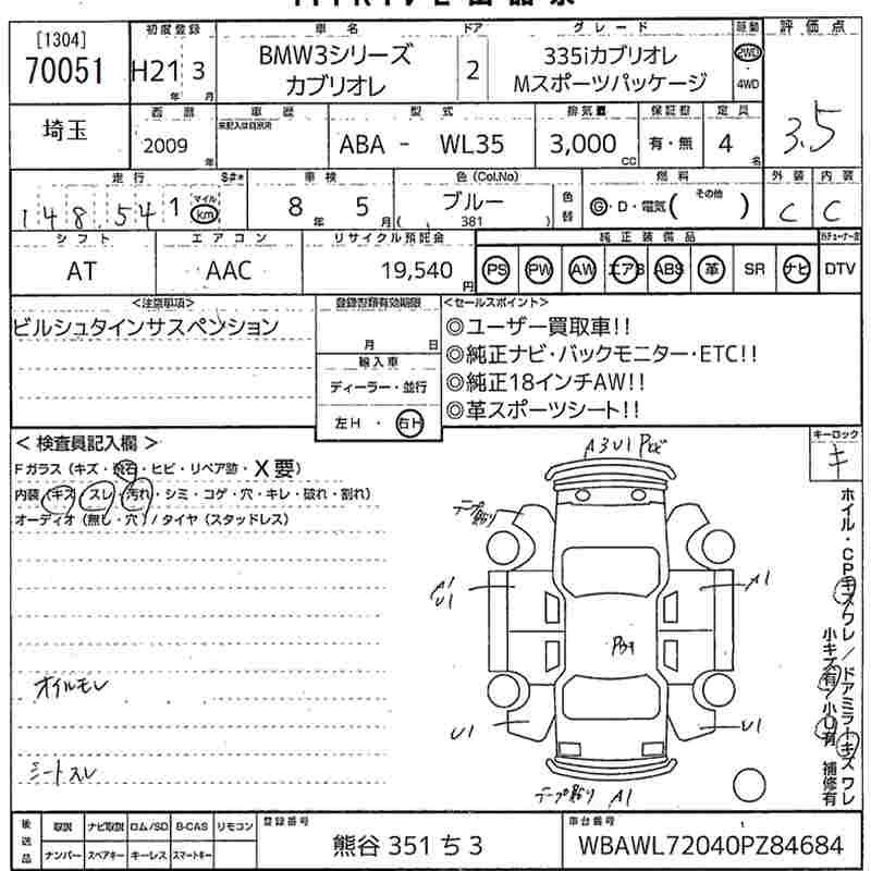 BMW 3 SERIES 335I CABRIO M SPORT PACKAGE - лот 70051