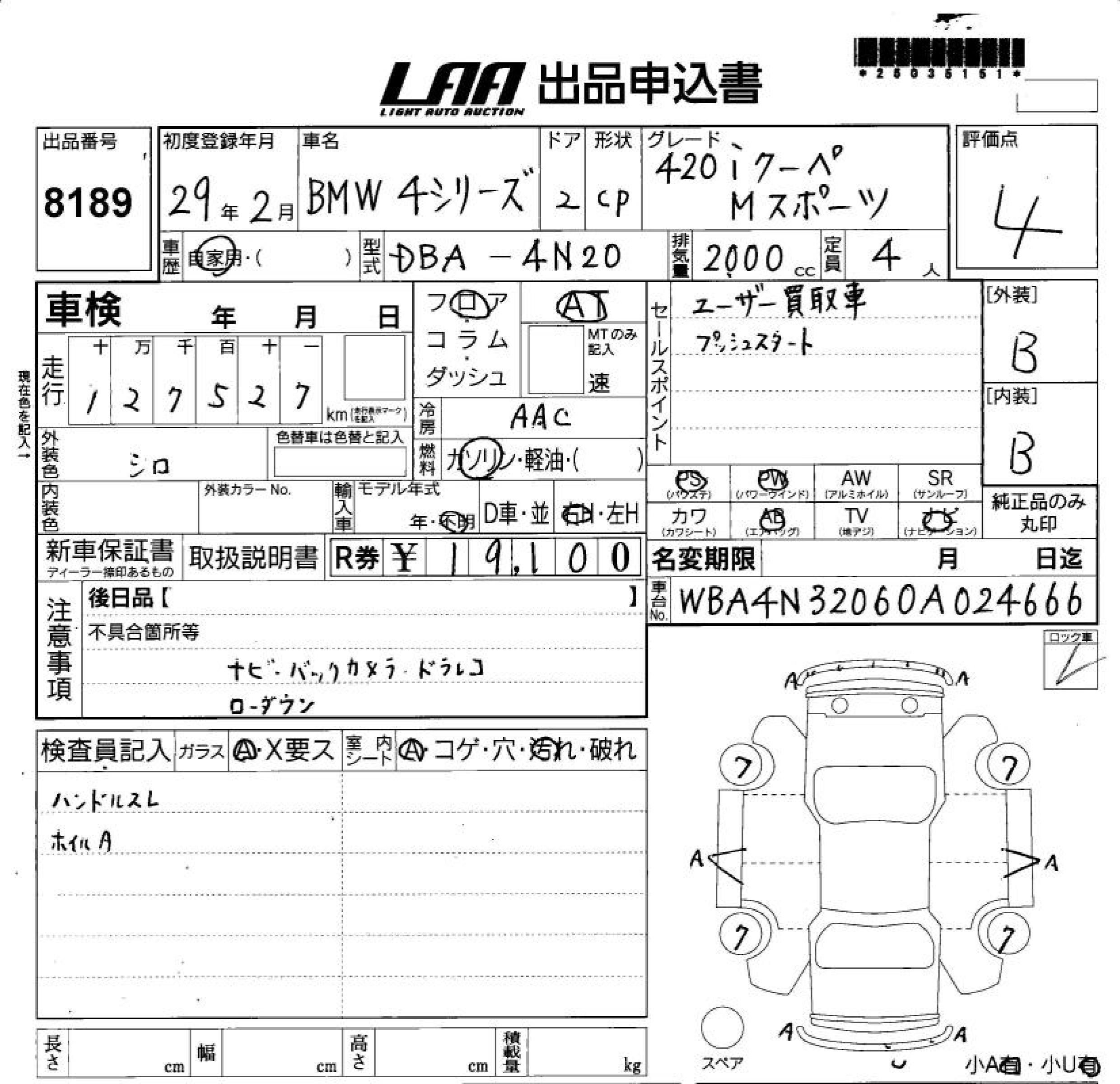 BMW 4 SERIES - лот 8189