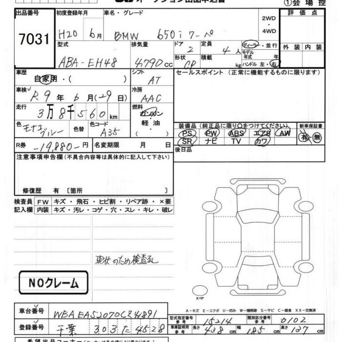 BMW 6 SERIES - лот 7031