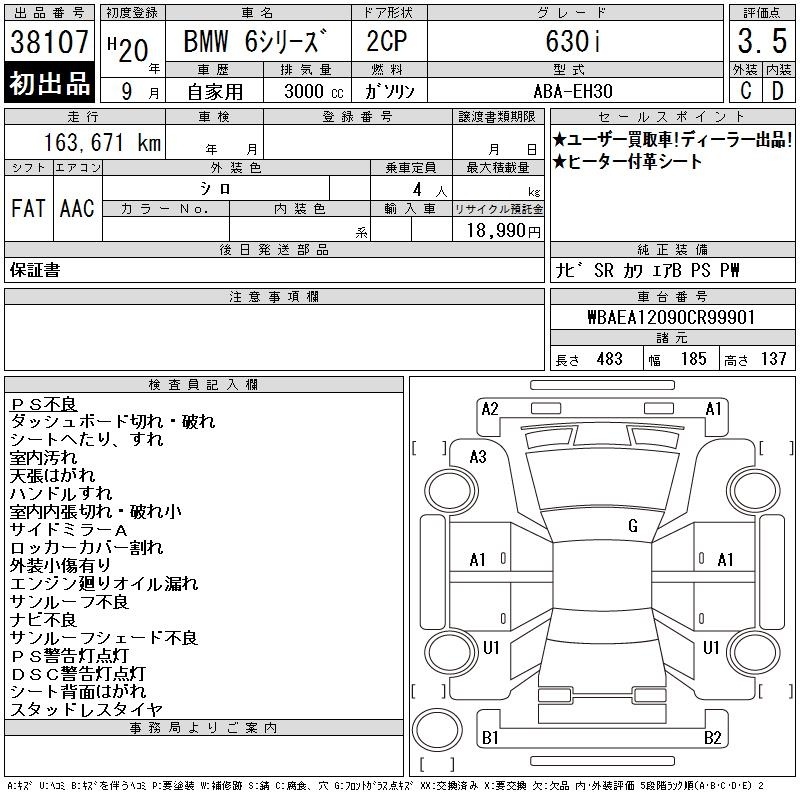 BMW 6 SERIES - лот 38107