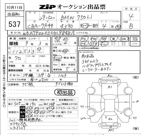 BMW 7 SERIES - лот 537
