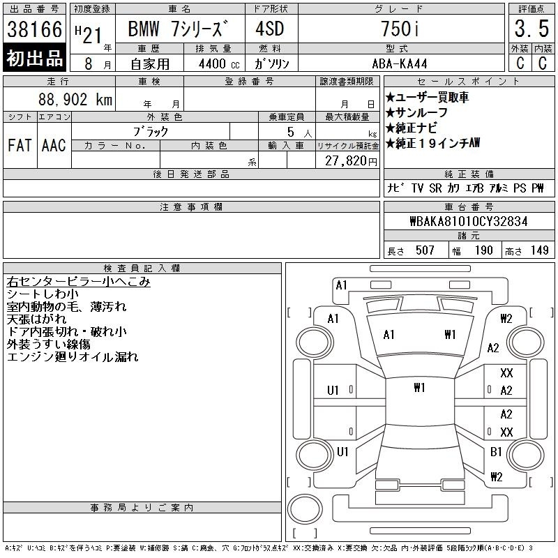 BMW 7 SERIES - лот 38166