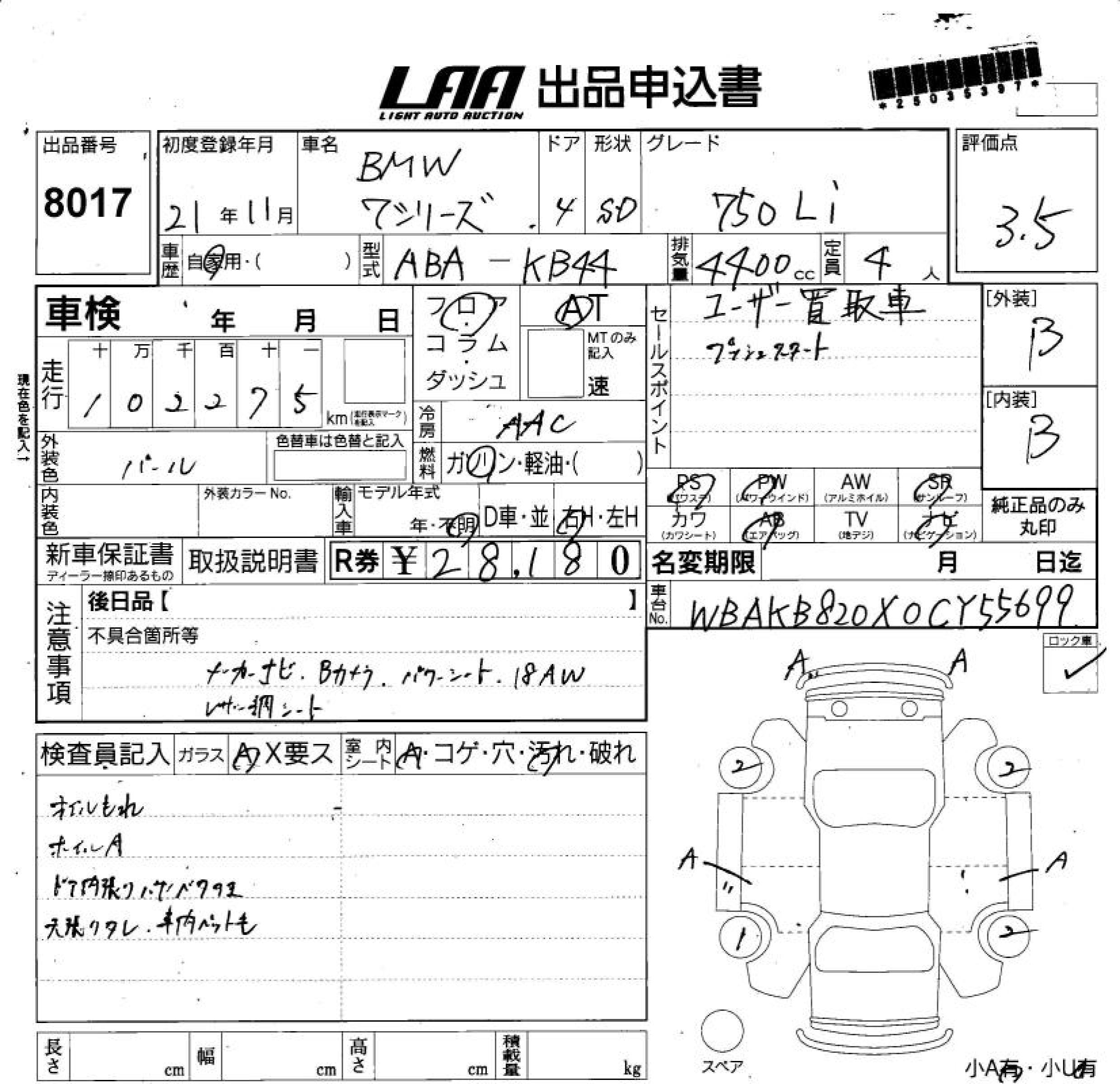 BMW 7 SERIES - лот 8017