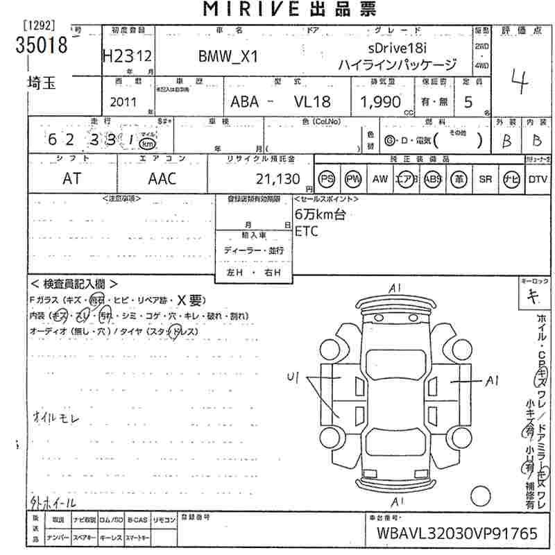 BMW X1 SDRIVE18I HIGH LINE PACKAGE - лот 35018