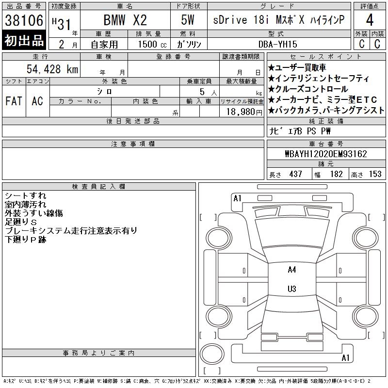 BMW X2 SDRIVE18IM SPOILER X HIGH LINE P - лот 38106