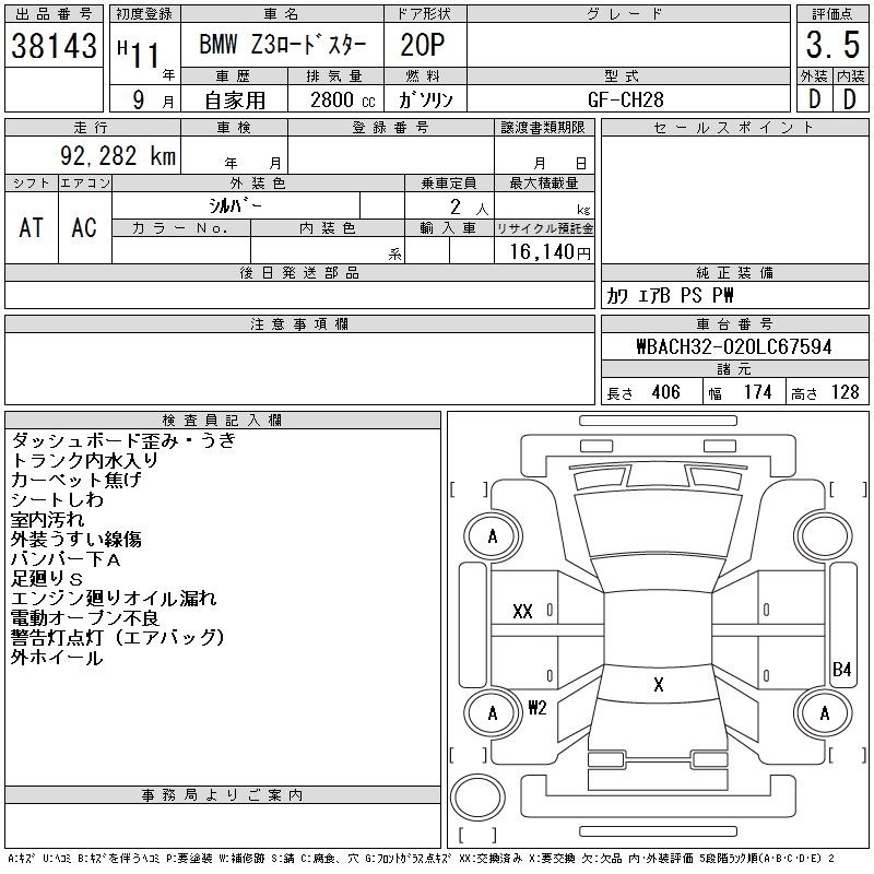 BMW Z3 ROADSTER - лот 38143