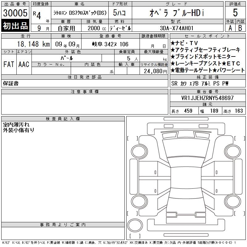 CITROEN DS7 CROSSBACK - лот 30005