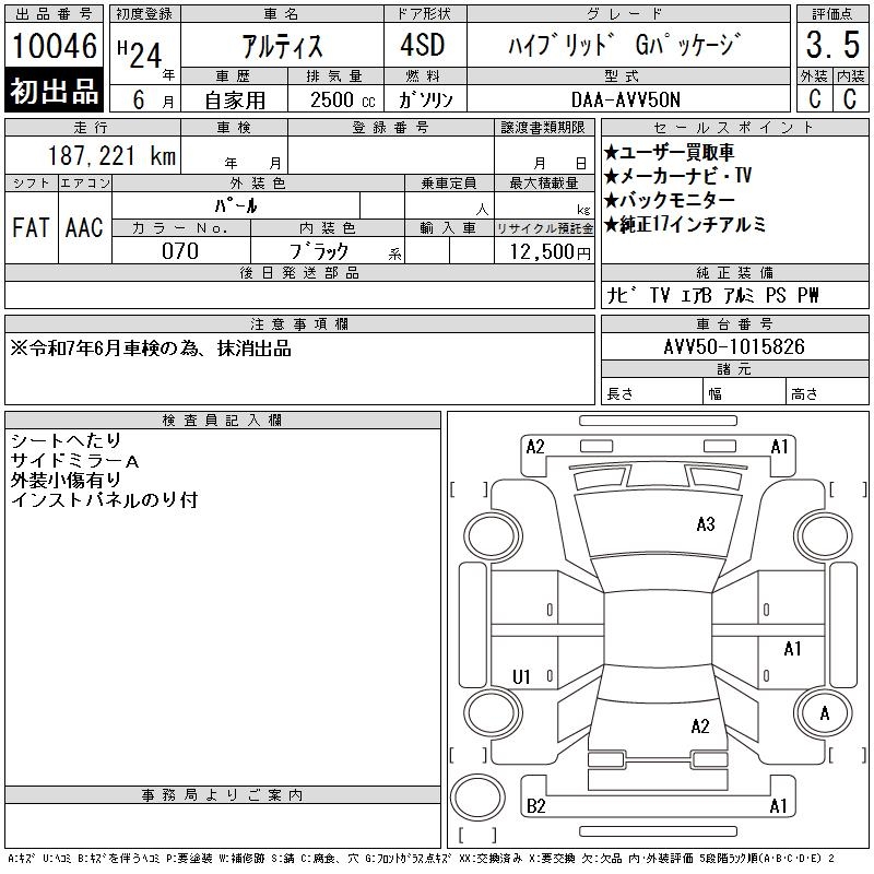 DAIHATSU ALTIS HYBRID G PACKAGE - лот 10046