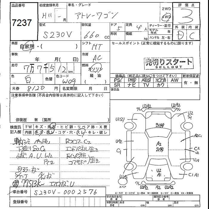 DAIHATSU ATRAI VAN 4WD - лот 7237