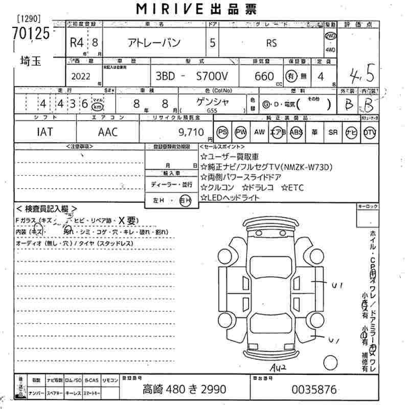 DAIHATSU ATRAI VAN RS - лот 70125
