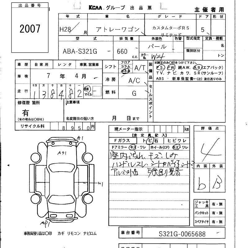 DAIHATSU ATRAI WAGON CUSTOM TURBO RS LIMITED - лот 2007