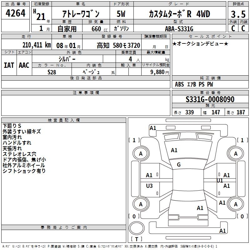 DAIHATSU ATRAI WAGON CUSTOM TURBO R 4WD - лот 4264