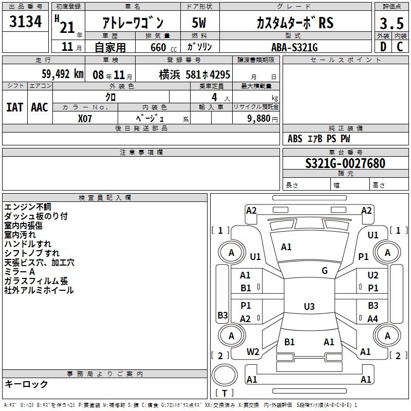 DAIHATSU ATRAI WAGON CUSTOM TURBO RS - лот 3134