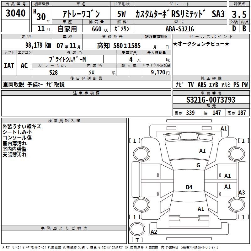 DAIHATSU ATRAI WAGON CUSTOM TURBO RS LIMITED SA3 - лот 3040