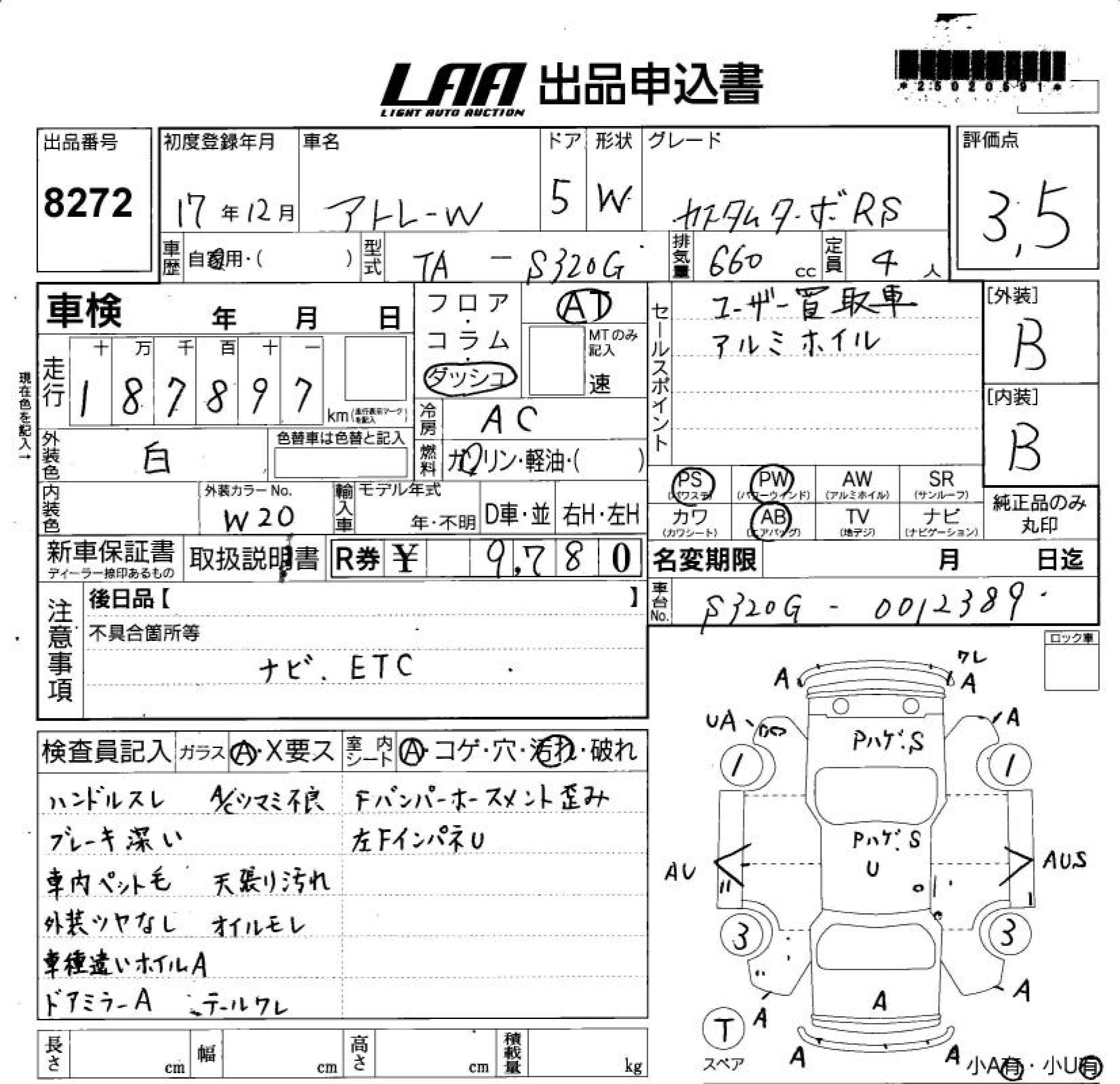 DAIHATSU ATRAI WAGON CUSTOM TURBO RS - лот 8272