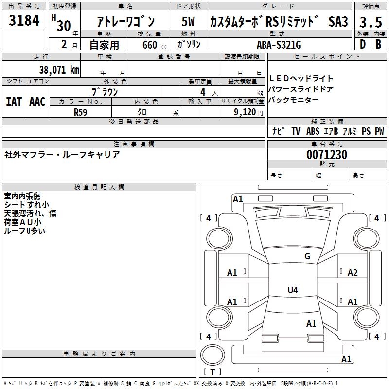 DAIHATSU ATRAI WAGON CUSTOM TURBO RS LIMITED SA3 - лот 3184