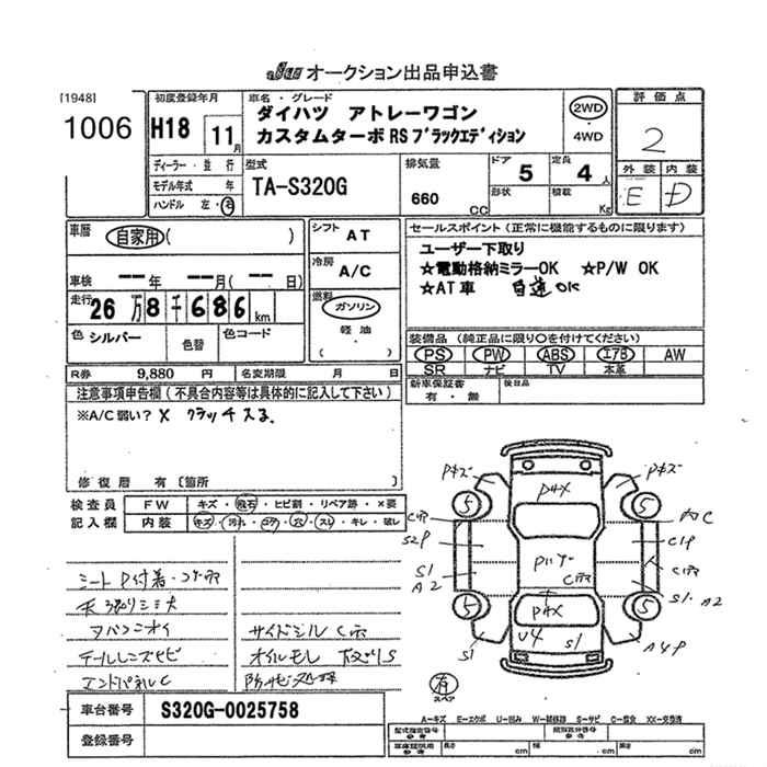 DAIHATSU ATRAI WAGON CUSTOM TURBO RS BLACK EDITION - лот 1006