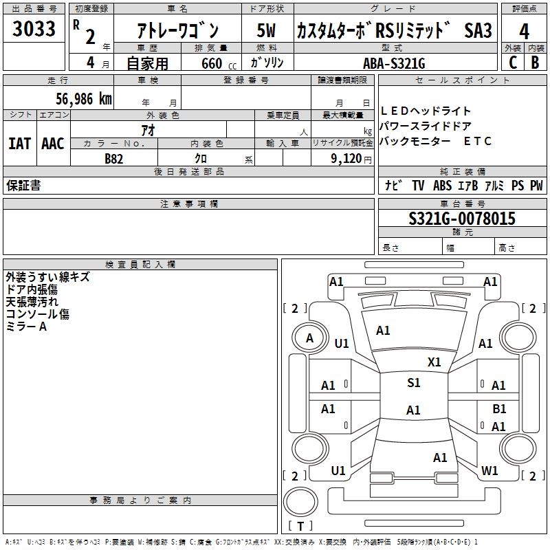 DAIHATSU ATRAI WAGON CUSTOM TURBO RS LIMITED SA3 - лот 3033