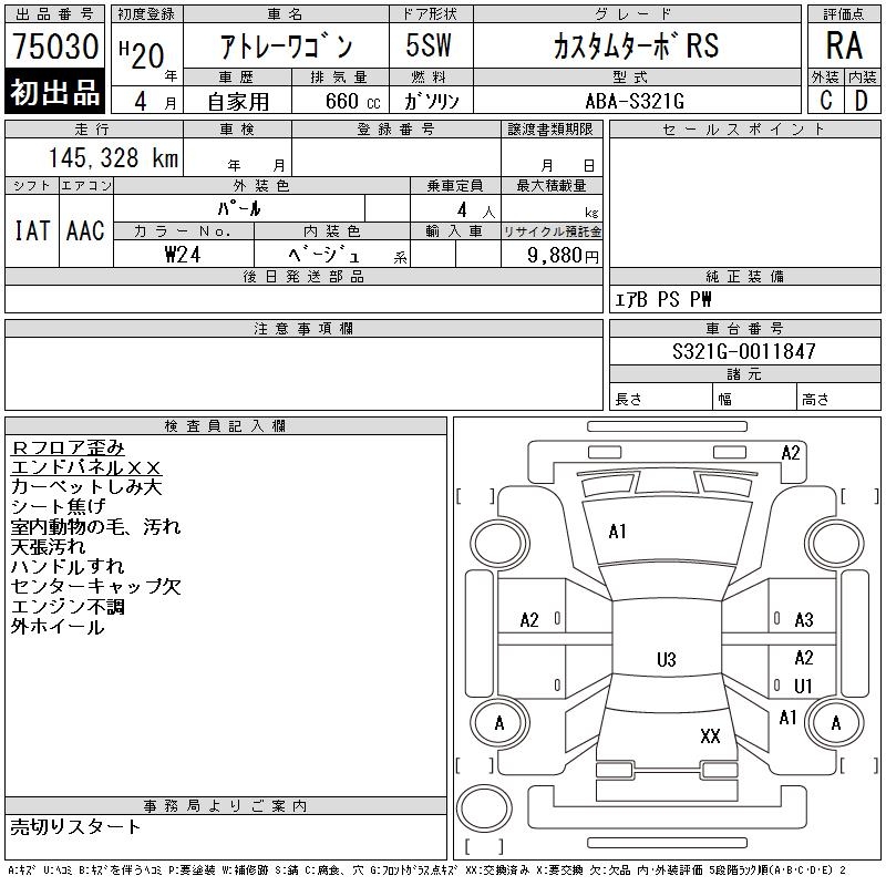 DAIHATSU ATRAI WAGON CUSTOM TURBO RS - лот 75030