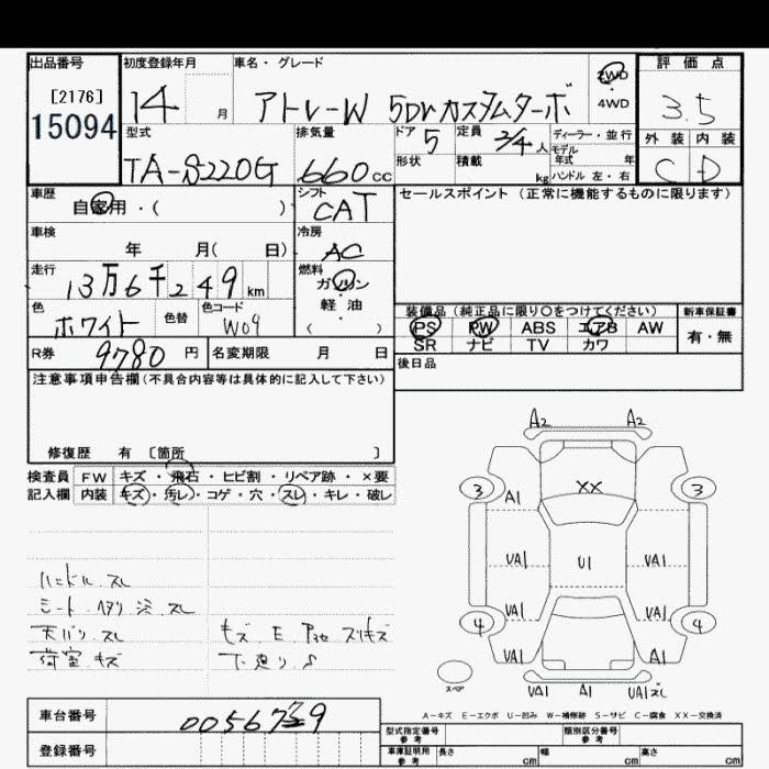 DAIHATSU ATRAI WAGON CUSTOM TURBO - лот 15094