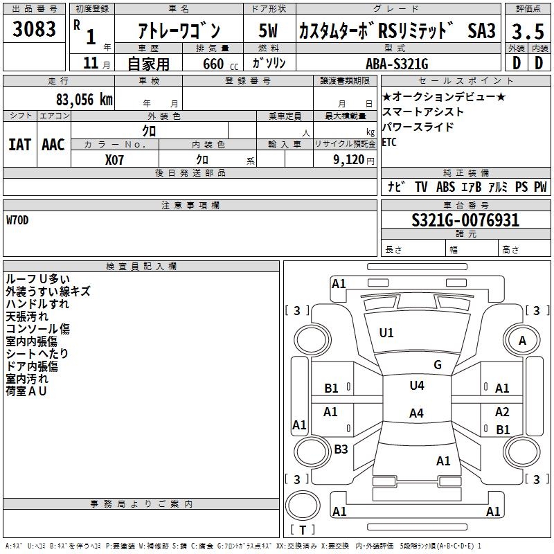 DAIHATSU ATRAI WAGON CUSTOM TURBO RS LIMITED SA3 - лот 3083