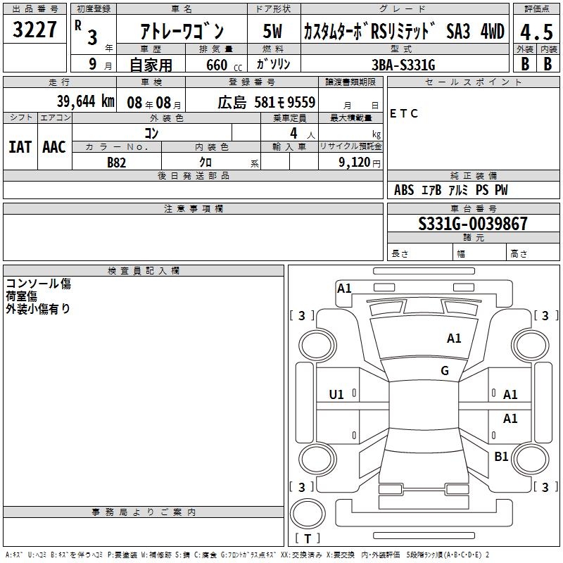 DAIHATSU ATRAI WAGON CUSTOM TURBO RS LIMI SA3 4WD - лот 3227