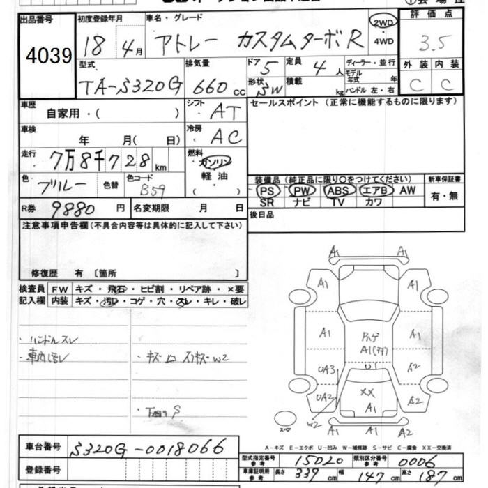 DAIHATSU ATRAI WAGON CUSTOM TURBO R - лот 4039