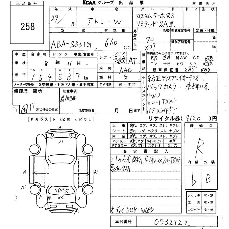 DAIHATSU ATRAI WAGON CUSTOM TURBO RS SA. - лот 258