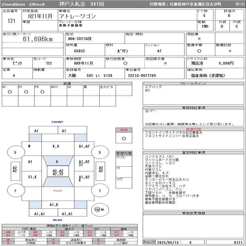 DAIHATSU ATRAI WAGON CAR CHAIR MOVEMENT CAR - лот 121