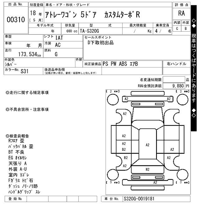 DAIHATSU ATRAI WAGON CUSTOM TURBO R - лот 310
