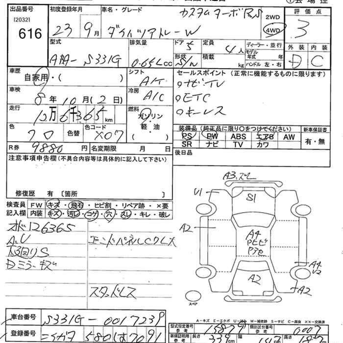 DAIHATSU ATRAI WAGON 4WD CUSTOM TURBO RS - лот 616