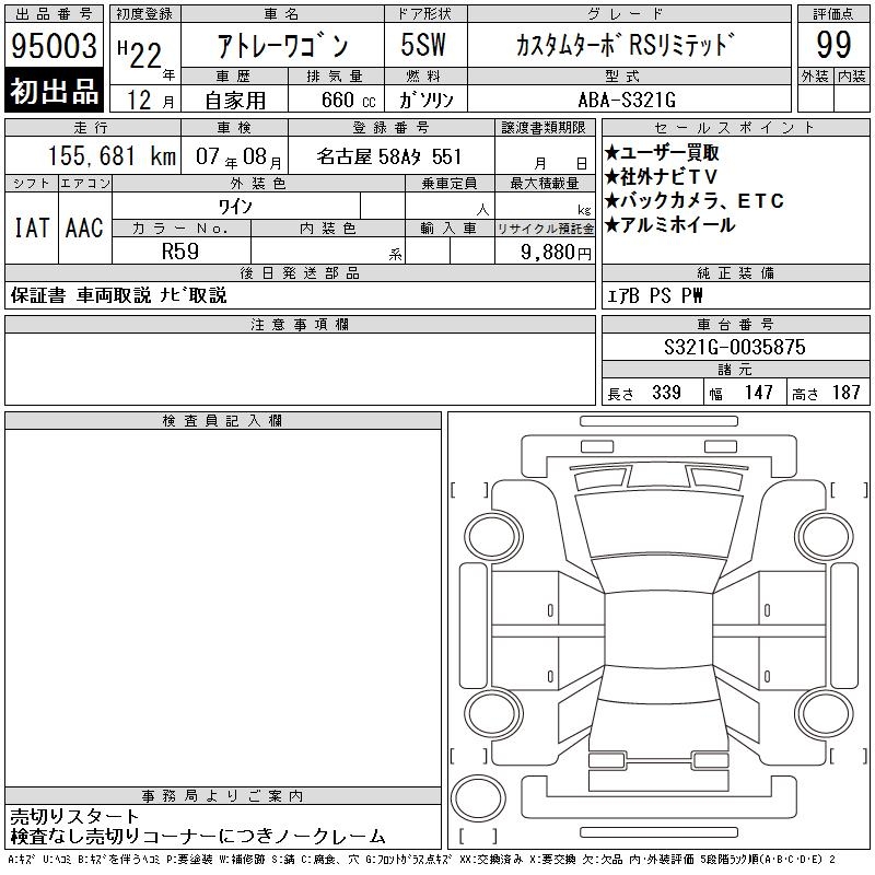 DAIHATSU ATRAI WAGON CUSTOM TURBO RS LIMITED - лот 95003