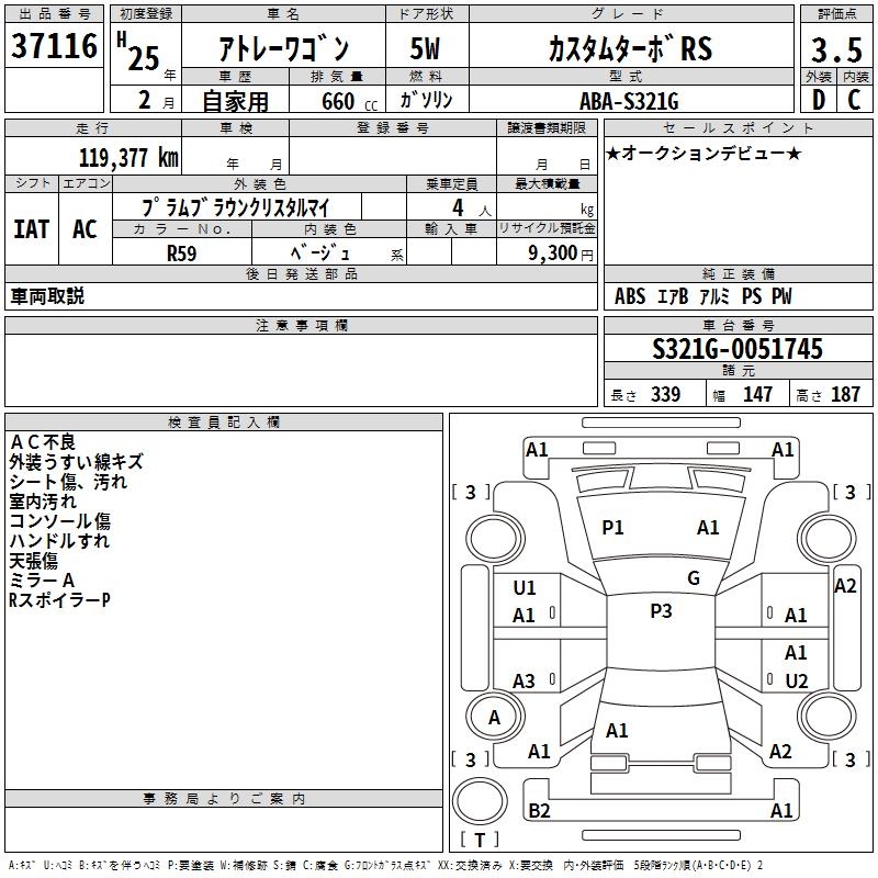DAIHATSU ATRAI WAGON CUSTOM TURBO RS - лот 37116
