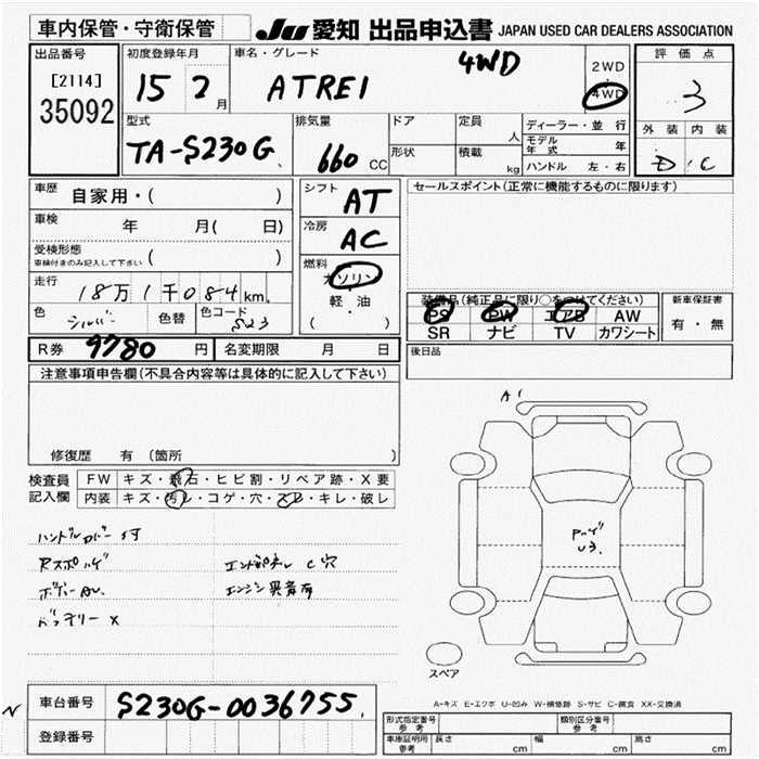 DAIHATSU ATRAI WAGON 4WD - лот 35092
