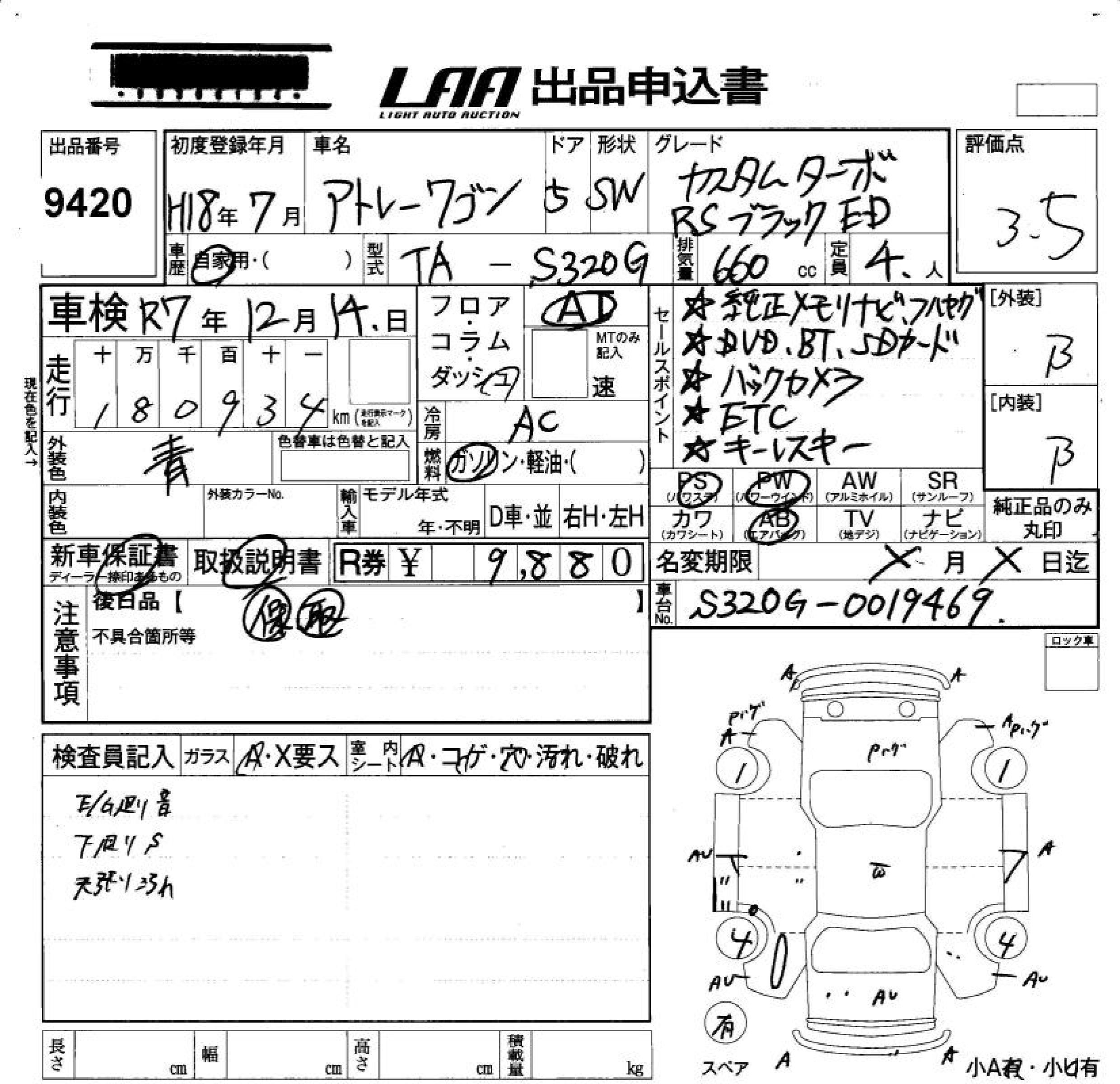 DAIHATSU ATRAI WAGON CUSTOM TURBO RS BLACK E - лот 9420