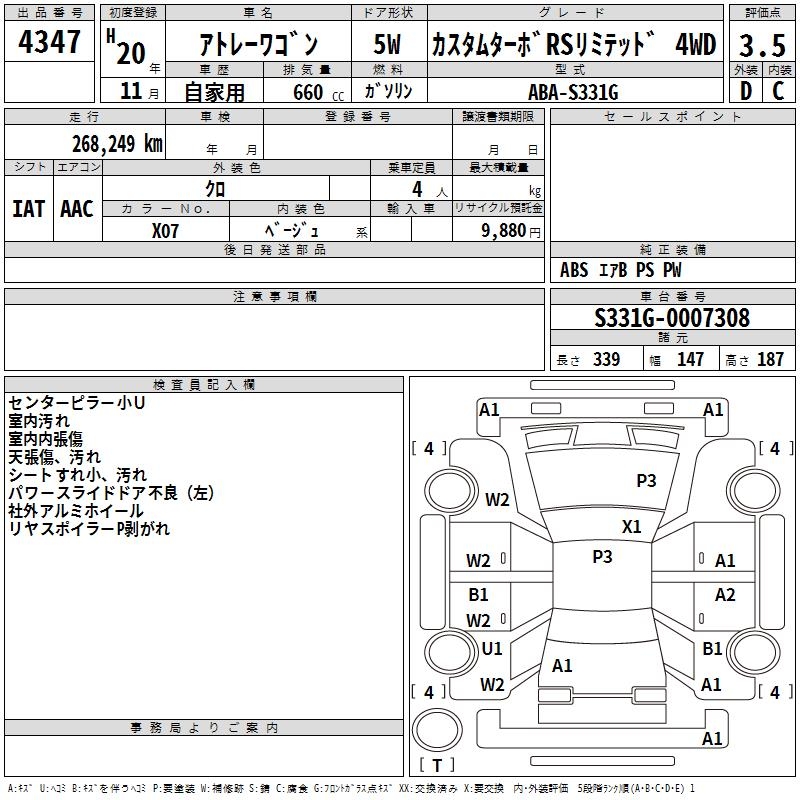 DAIHATSU ATRAI WAGON CUSTOM TURBO RS LIMITED 4WD - лот 4347
