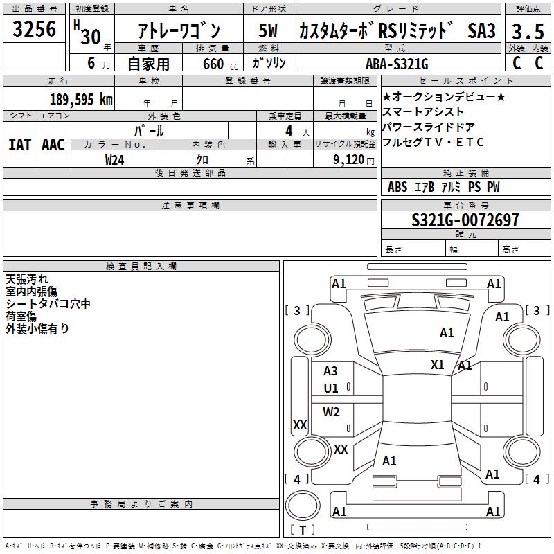 DAIHATSU ATRAI WAGON CUSTOM TURBO RS LIMITED SA3 - лот 3256