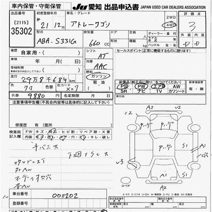 DAIHATSU ATRAI WAGON 4WD - лот 35302