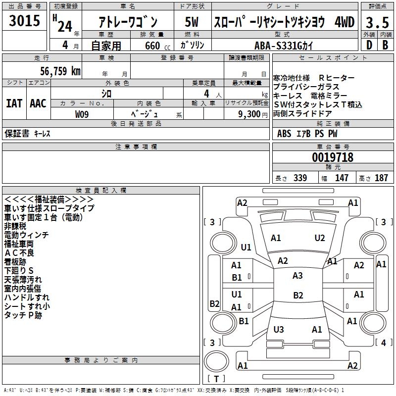 DAIHATSU ATRAI WAGON SLOPER REAR SEAT EXIST USE 4WD - лот 3015