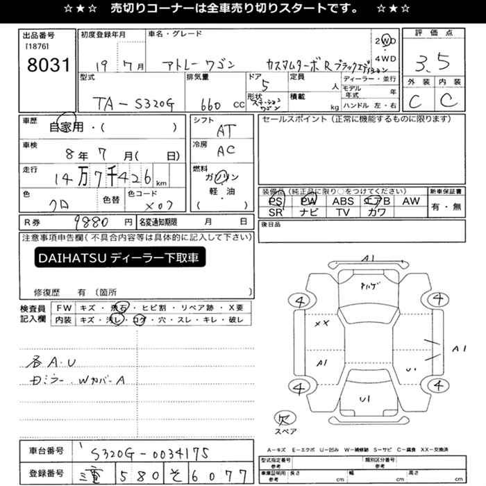DAIHATSU ATRAI WAGON CUSTOM TURBO R BLACK EDITION - лот 8031