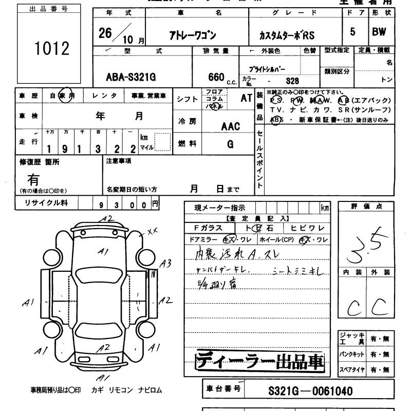 DAIHATSU ATRAI WAGON CUSTOM TURBO RS - лот 1012