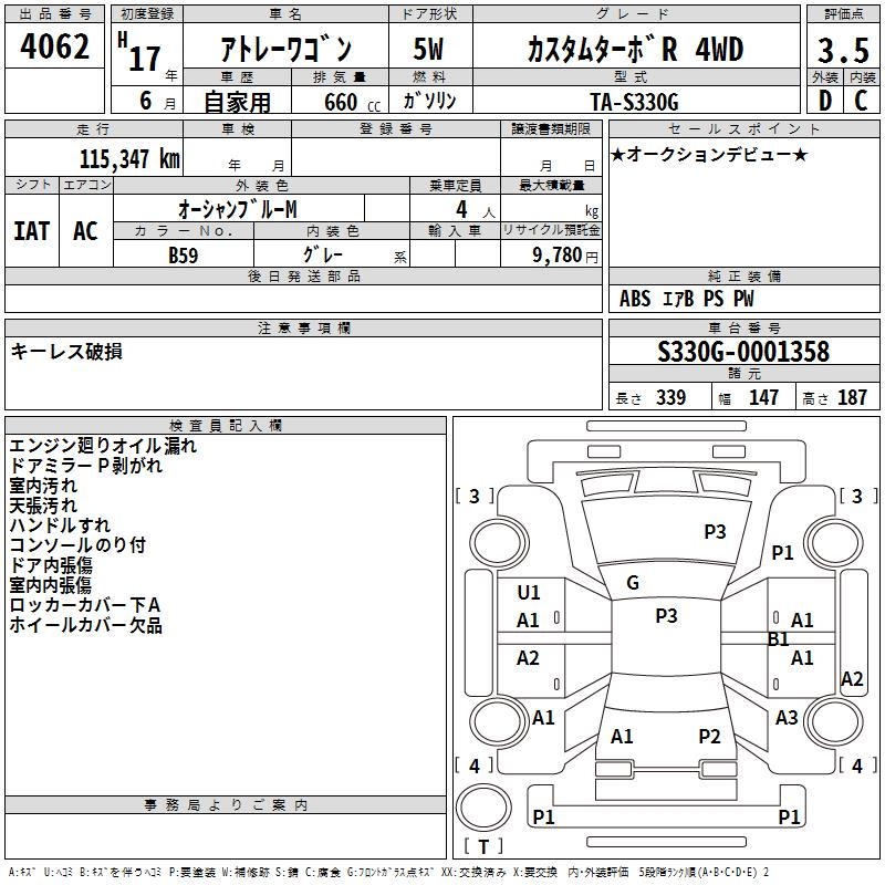 DAIHATSU ATRAI WAGON CUSTOM TURBO R 4WD - лот 4062