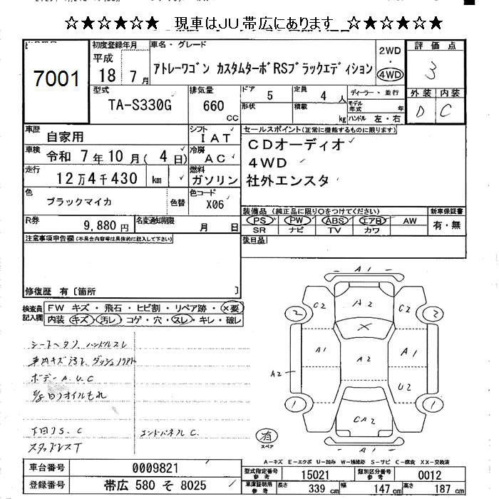 DAIHATSU ATRAI WAGON 4WD CUSTOM TURBO RS BLACK EDITION - лот 7001