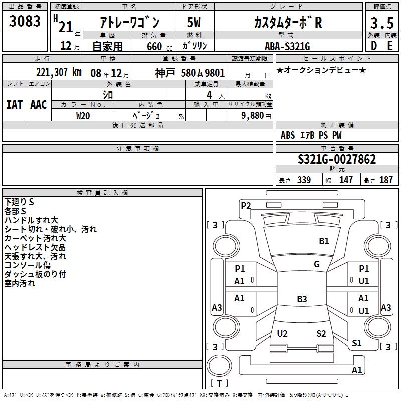 DAIHATSU ATRAI WAGON CUSTOM TURBO R - лот 3083