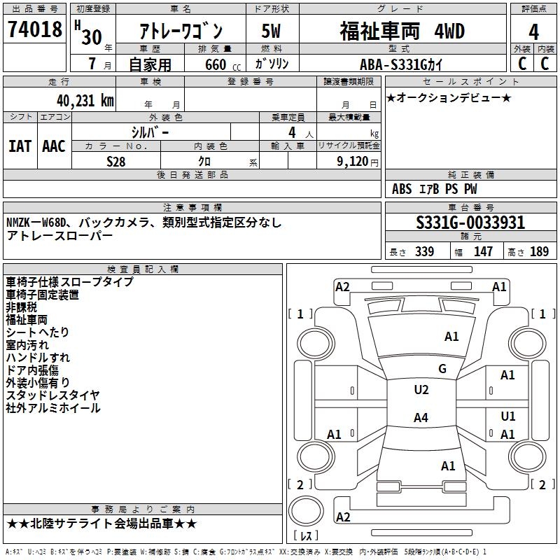 DAIHATSU ATRAI WAGON WELLFARE CAR 4WD - лот 74018