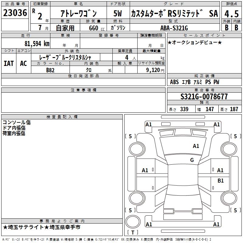 DAIHATSU ATRAI WAGON CUSTOM TURBO RS LIMITED SA3 - лот 23036