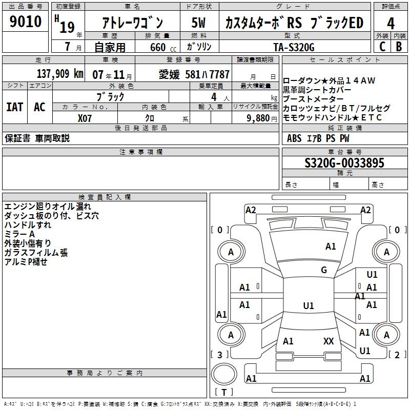 DAIHATSU ATRAI WAGON CUSTOM TURBO RS BLACK ED - лот 9010