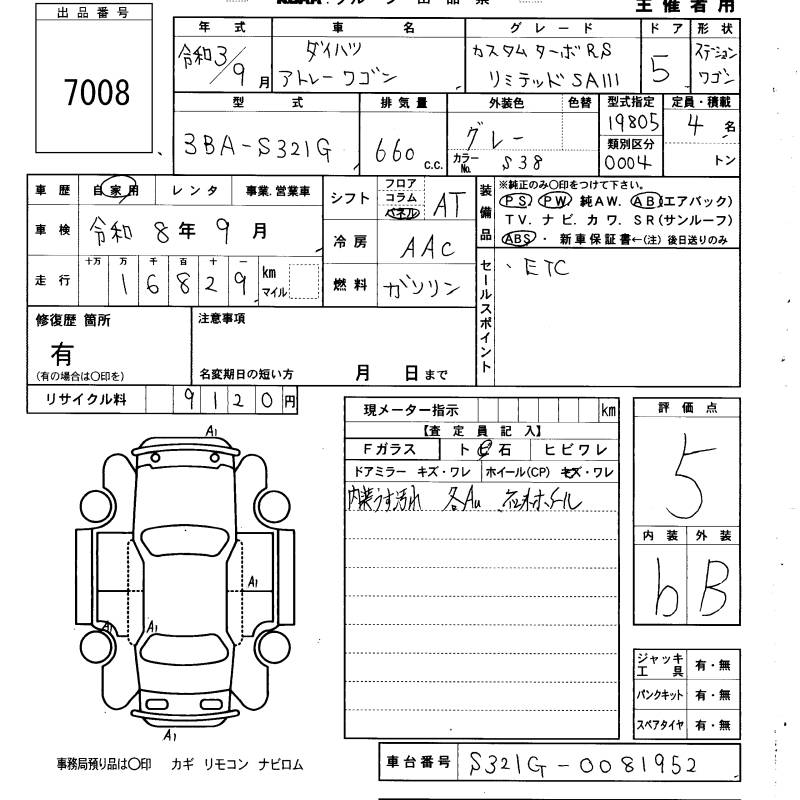 DAIHATSU ATRAI WAGON CUSTOM TURBO RS LIMITED SA3 - лот 7008