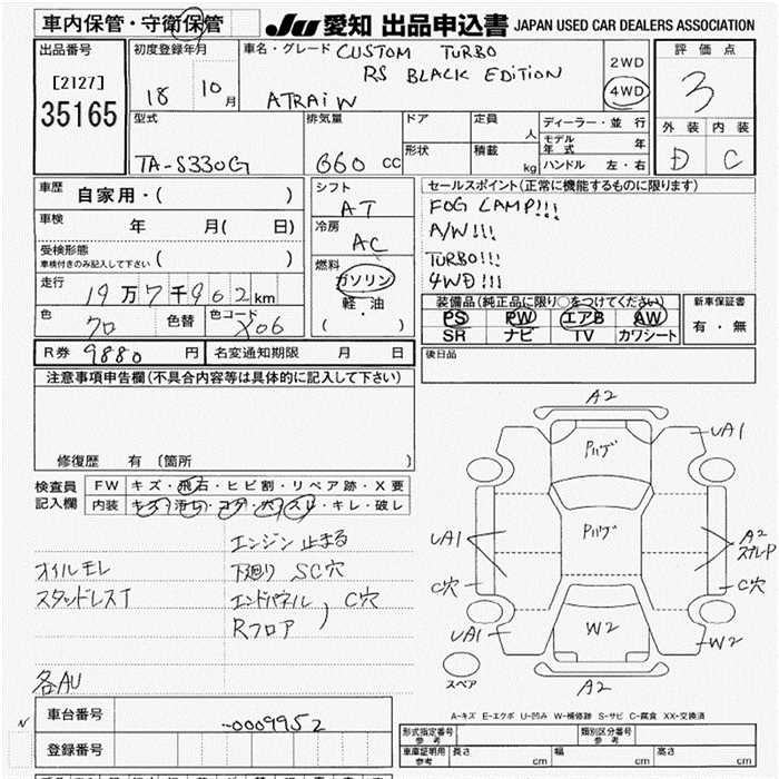 DAIHATSU ATRAI WAGON CUSTOM T RS BLACK ED 4WD - лот 35165